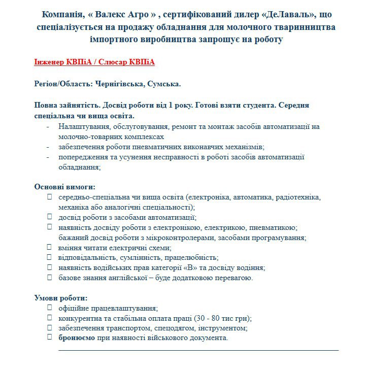 📩 ОЧІКУЄМО НА РЕЗЮМЕ: е-mail: [email protected]